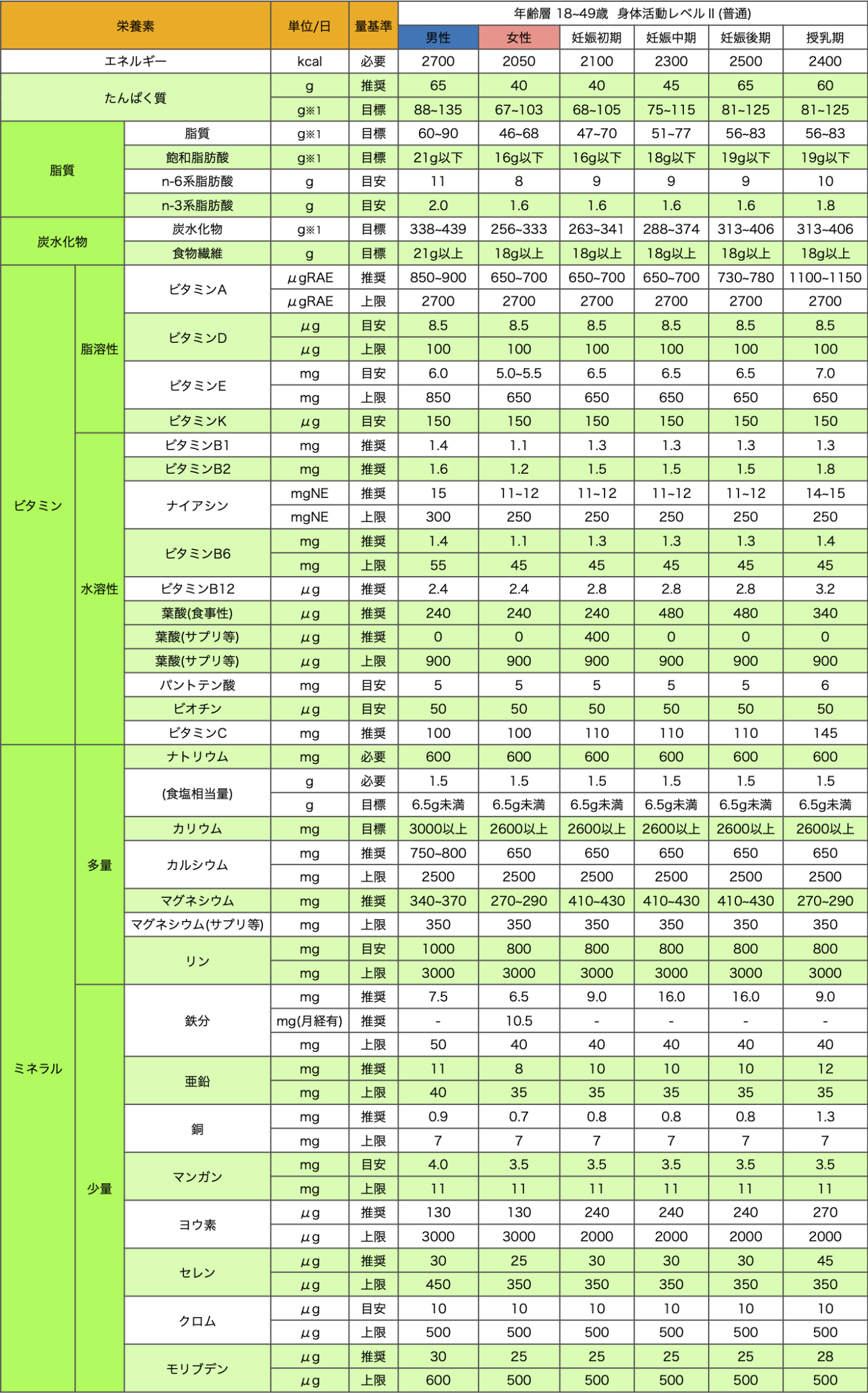 (厚労省 日本人の食事摂取基準2020年版:https://www.mhlw.go.jp/stf/newpage_08517.html)